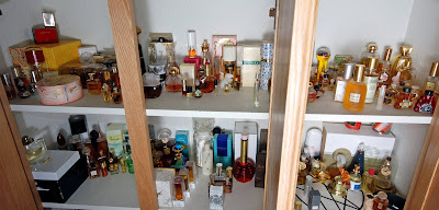 Anyway, I thought my system was going to be great then today I got a slew of new goodies, and just dumped them in this closet, filling in most of the blank space you can see here, without taking time to sniff everything out. So it's all out of order again... And then I think about all the counter tops, drawers and other space I've dedicated to a growing maze of bottles, amazing odds and greats, still without the order I crave to impose over the whole!